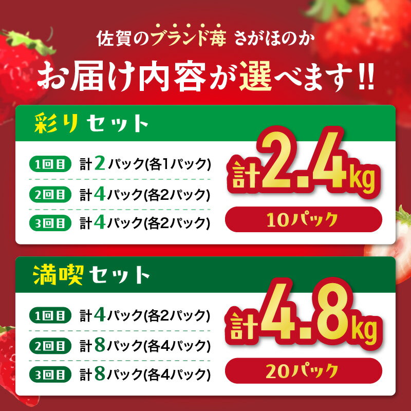 【ふるさと納税】佐賀産「さがほのか」定期便【全3回】<内容量が選べる/ 彩りセット・満喫セット> 【 果物 フルーツ いちご 苺 先行予約 ふるさと納税 果物 】