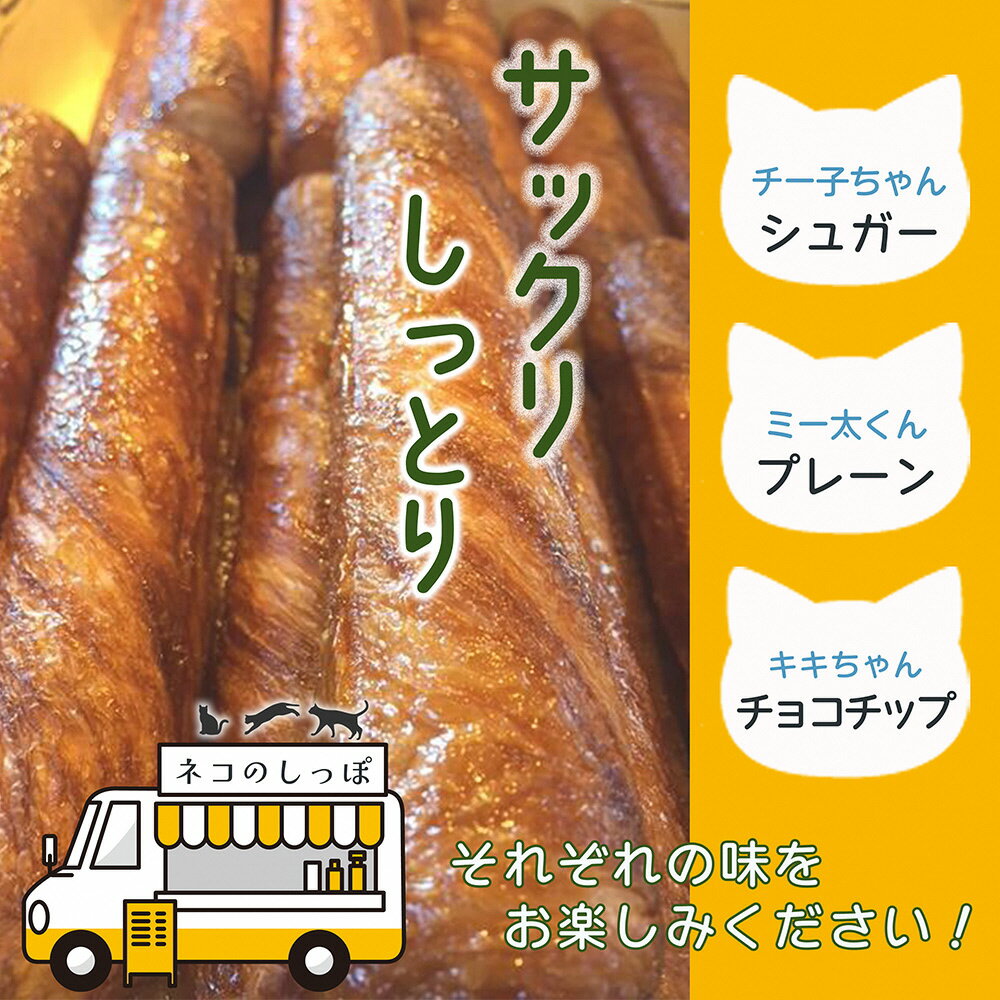- 【ふるさと納税】パン デニッシュバー ネコのしっぽ 3種類【シュガー味・プレーン味・チョコチップ】20本≪ふるさと納税 パン デニッシュ ネコ 猫 おやつ 朝食 冷凍≫※キャットハウス段ボール箱でお届け※着日指定不可