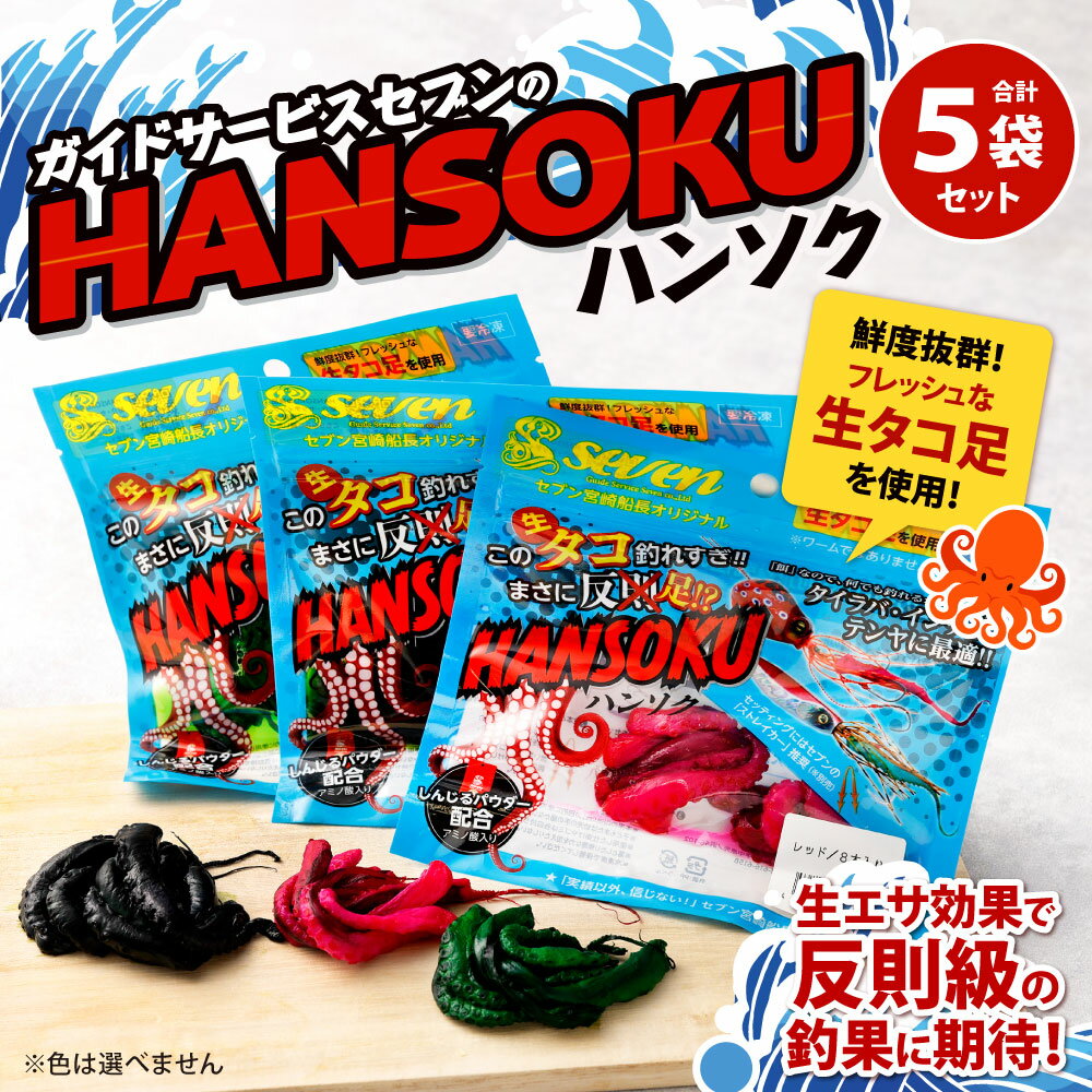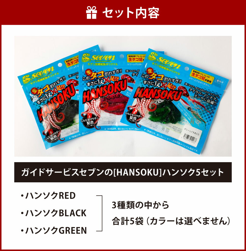 【ふるさと納税】ガイドサービスセブンの[HANSOKU] ハンソク 5セット (カラーは選べません) RED BLACK GREEN 赤 黒 緑 タコ タコ足 生ダコ 釣り餌 釣具 生餌 釣り 冷凍 福岡県 送料無料