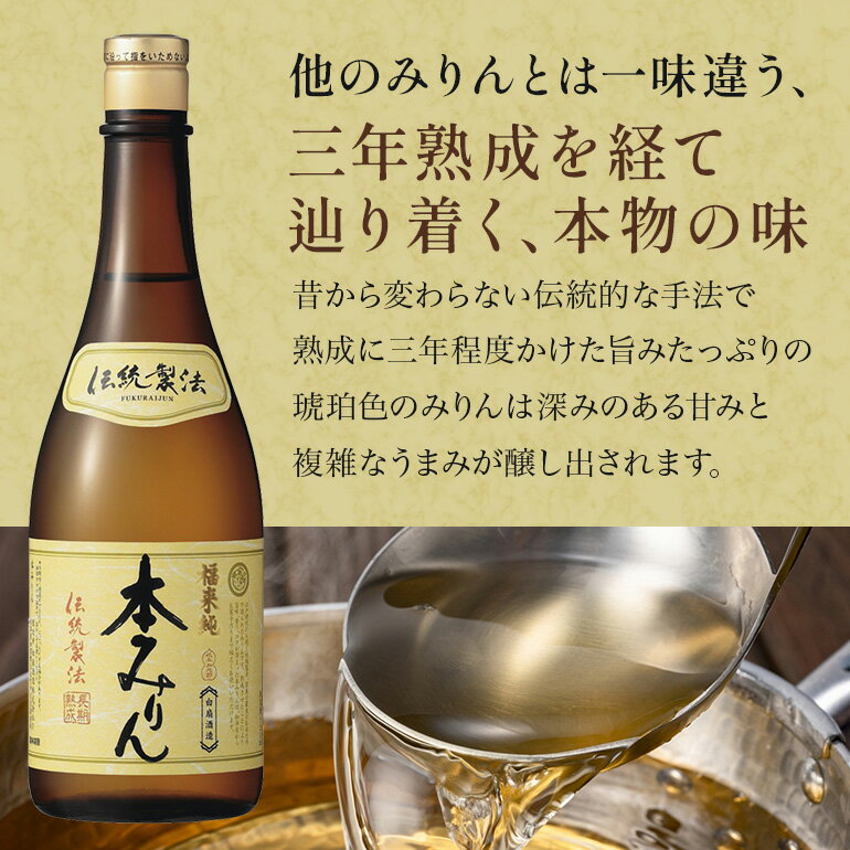 【ふるさと納税】伝統製法熟成本みりん│ ミリン 味醂 みりん 本みりん 調味料 白扇酒造 3年 熟成 川辺 国産 米こうじ もち米 米焼酎 料理 本格 和食 純米 厳選素材 720ml 3本 セット ギフト 贈答 贈答用 家庭用 お取り寄せ 常温 保存 岐阜県 川辺町 (A-7/E-1)