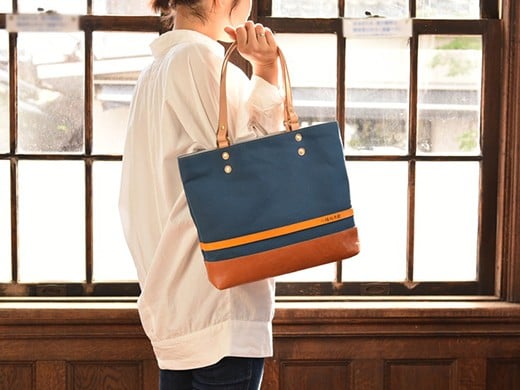 - ハンドメイド 八幡帆布鞄トートバッグ・名入れ可能 Mサイズ【CC01W】