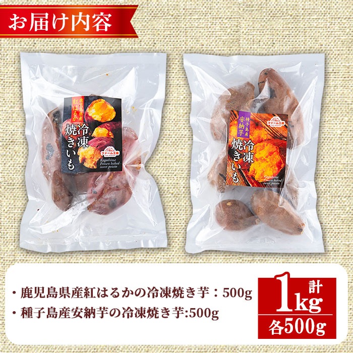 - n256 <期間限定!>「鹿児島県産紅はるかの冷凍焼き芋」と「種子島産安納芋の冷凍焼き芋」食べ比べセット(計1kg) 国産 さつまいも さつま芋 安納芋 安納いも サツマイモ べにはるか おやつ スイーツ 【ファーム工房】