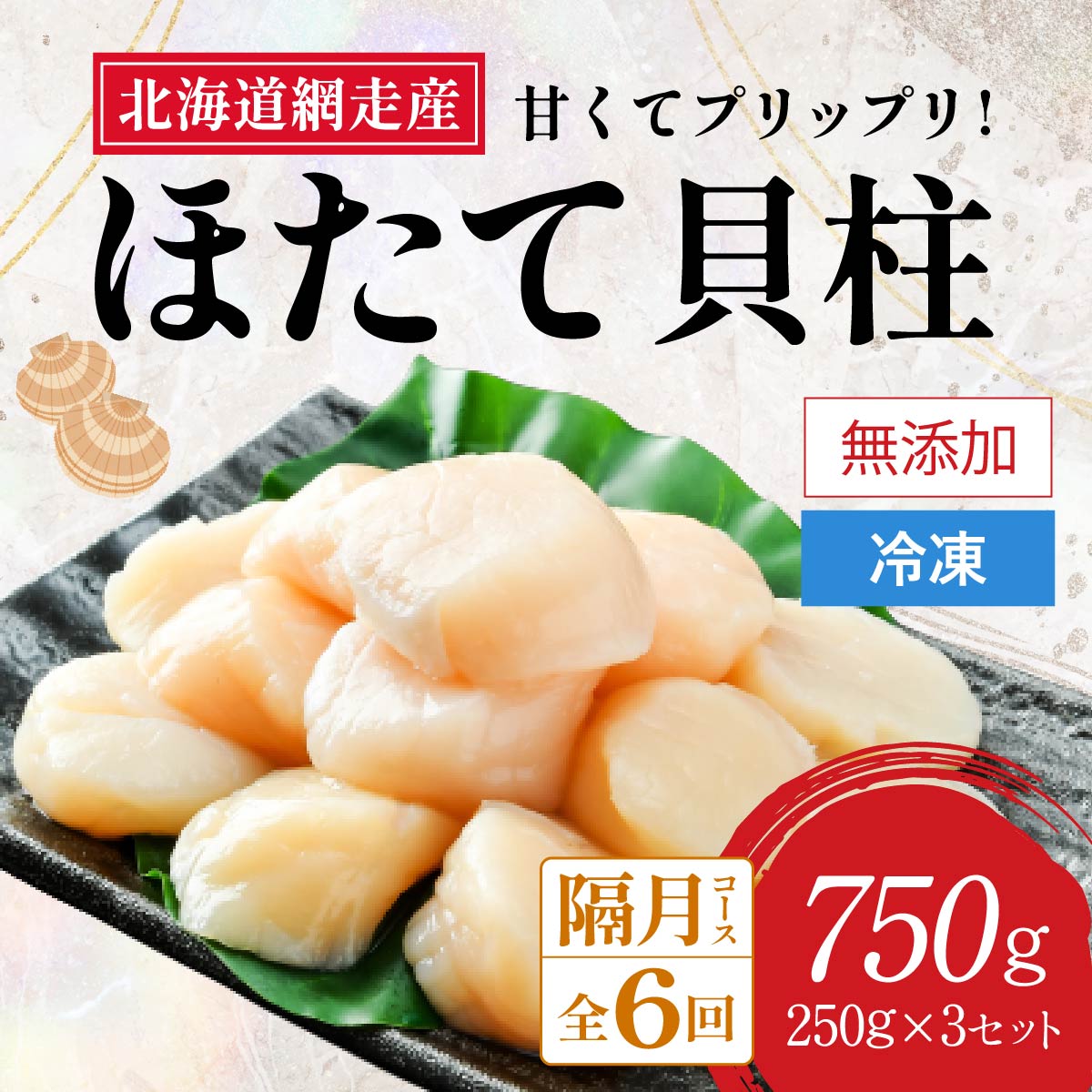 - 【新物先行予約 全6回(隔月)】網走前浜産 無添加ホタテ貝柱750g(250g×3袋)(2025年12月より順次発送) ABAI036