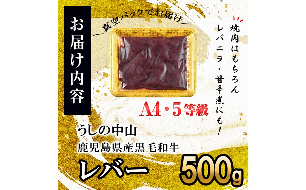 - うしの中山 A4・A5等級黒毛和牛 レバー 500g(500g×1P)p9-034