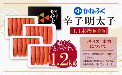 - W01-10 かねふく 辛子明太子(Lサイズ・1本物・無着色)1.2kg [30日以内に発送] 海鮮 魚介 明太子 明太 めんたいこ 福岡 人気 辛子明太子 無着色 人気 おすすめ 贈答 ランキング リピート