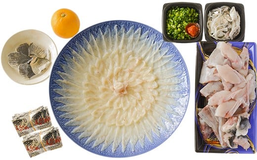 - W01-02 とらふぐセット(3人前)※2025年12月発送分 ふぐ刺し ふぐ鍋 薬味 ポン酢付き とらふぐ トラフグ ふぐ 河豚 ふぐちり 人気 とらふぐ 国産 てっさ てっちり おすすめ とらふぐ 刺身 鍋 セット