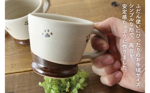 - 【益子焼】肉球マグカップペア2個セット|肉球 マグカップ 手書き 食器洗浄機可 電子レンジ可(BH003)
