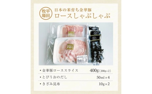 - 平田牧場 日本の米育ち 金華豚 ロースしゃぶしゃぶギフト 400g ローススライス とびうおのだし きざみ昆布 冷凍便 豚肉 ロース しゃぶしゃぶ 小分け SB0763