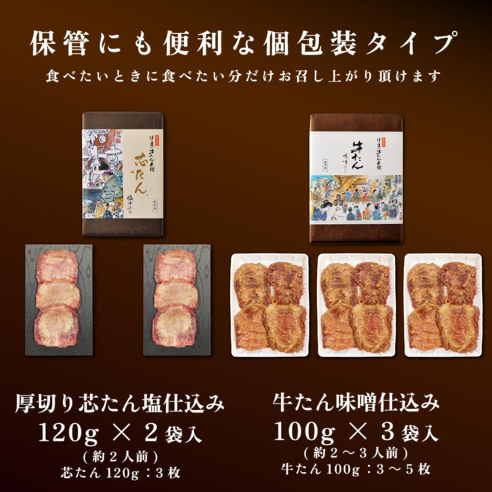 「厚切り 芯たん 塩仕込み」と「牛たん 味噌仕込み」のセット 540g 食べ比べ【肉 お肉 にく 食品 人気 おすすめ ギフト】