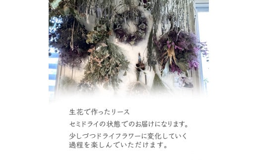 - お花屋さんおまかせのハーフリース 直径約25cm 花輪 セミドライ