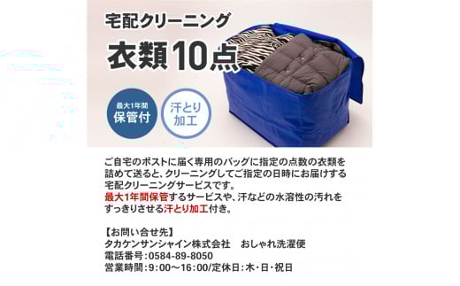 - 【最大1年間保管付!】衣類クリーニング(10点) タカケンクリーニング タカケンサンシャイン おしゃれ宅急便 宅配クリーニング 岐阜県 大垣市
