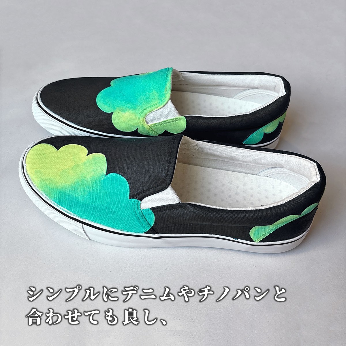- スニーカー moku-surf D 手描きスリッポン 左右非対称デザイン レディース メンズ ユニセックス ワイズ 2E 22.0~28.0cm【受注制作】