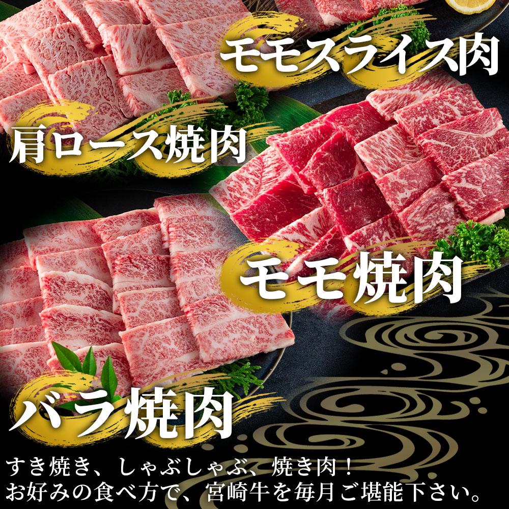<【6ヶ月定期便】総重量3.1kgの宮崎牛味わい尽くし>すき焼き、しゃぶしゃぶ、焼肉など【MI076-my】【ミヤチク】