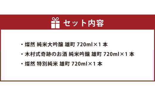 燦然&木村式奇跡のお酒 雄町 純米大吟醸&純米吟醸&特別純米 720ml×3本セット