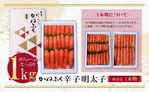 - W01-06 たっぷり大容量!!かねふく 辛子明太子(一本物)1kg [30日以内に発送] 海鮮 魚介 明太子 明太 めんたいこ 福岡 人気 辛子明太子 無着色 人気 おすすめ 1キロ 特上 大容量 贈答 ランキング リピート