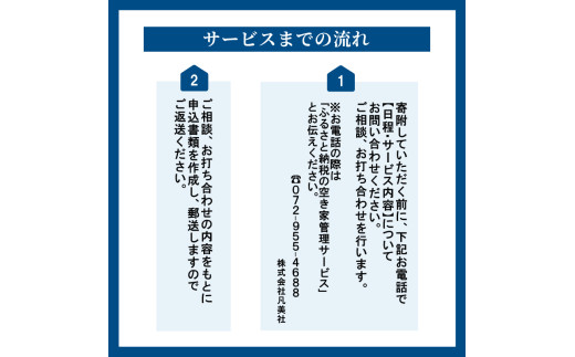 - 空き家管理 年4回 竹コース 外観 門塀 植栽 雑草 不法投棄 確認 ポスト 水道 チェック 屋外簡易清掃 植栽 刈込 雑草 刈取 施錠 メーター 確認 郵便物 整理 管理看板 設置 完了報告