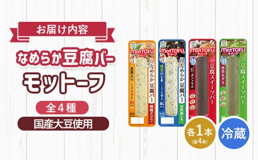 【たんぱく質】なめらか豆腐バー「モットーフ」全4本(4種×各1本) | 健康 豆腐バー なめらか たんぱく 植物性タンパク質 タンパク質 植物性たんぱく質 手軽 お手軽 朝ごはん おやつ 間食 ヘルシー お取り寄せ 宮城県 白石市 白石【53001】