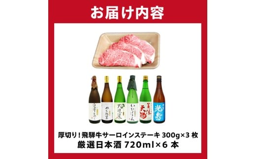 9-1 厚切り!飛騨牛サーロインステーキ300g×3枚 + 厳選日本酒720ml×6本【岐阜県 可児市 酒 日本酒 飲料 地酒 アルコール 手作り ギフト プレゼント お祝い 目録 肉 牛肉 】