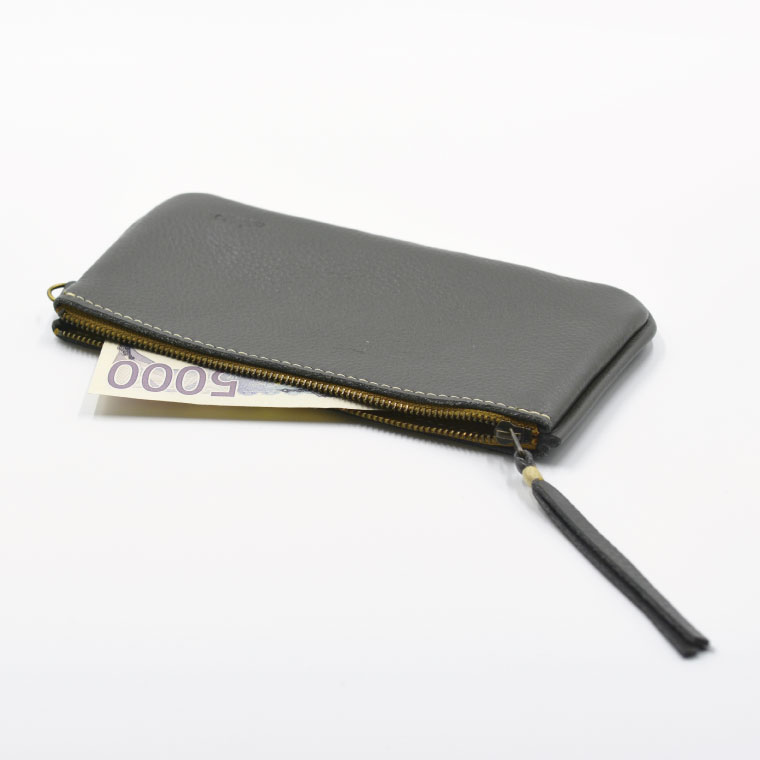 【ふるさと納税】益子の革工房maharoのファスナーお札ケース ダークグレー|栃木県 益子町 ふるさと納税 ファスナーお札ケース 牛革 手作り(AX138-5)