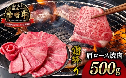 宮崎牛霜降り(肩ロース)焼肉500g| 宮崎牛 牛肉 肉 ブランド牛 国産牛 和牛 霜降り 肩ロース 肩 ロース 焼肉 BBQ 贈答用 贈答 ギフト 贈り物 グルメ 記念日 誕生日 内祝い お取り寄せ 内閣総理大臣賞 ミヤチク ホームパーティー お祝い 料理 キャンプ |_Tk031-014