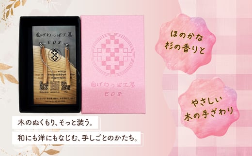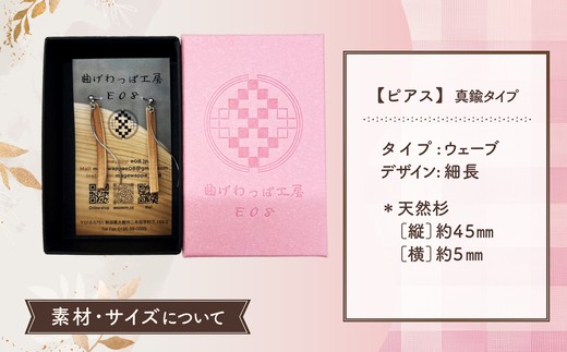 テレビで紹介された女性の伝統工芸士が作りました!【曲げわっぱアクセサリー】ウェーブタイプタイプ(細長デザイン)ピアス真鍮タイプ 65P6011 / 東北 秋田 大館 曲げわっぱ まげわっぱ マゲワッパ イヤリング ピアス アクセサリー 木製品 天然杉 工芸品 伝統的工芸品 伝統工芸品 木製 木製品 日本製 made in Japan 秋田杉 木 軽量 シンプル 職人 贈り物 プレゼント 誕生日