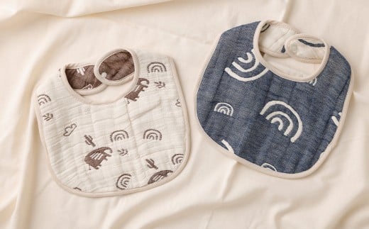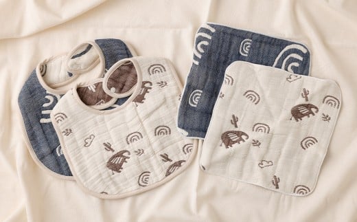 6重ガーゼ織スタイ ×2枚 (ベージュ・ネイビー) + 6重ガーゼ織ハンカチ ×2枚 (ベージュ・ネイビー) スタイ よだれかけ ハンカチ ガーゼ コットン 綿100% ベビー用品 出産祝い プレゼント ギフト 日本製