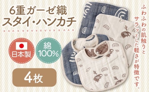 - 6重ガーゼ織スタイ ×2枚 (ベージュ・ネイビー) + 6重ガーゼ織ハンカチ ×2枚 (ベージュ・ネイビー) スタイ よだれかけ ハンカチ ガーゼ コットン 綿100% ベビー用品 出産祝い プレゼント ギフト 日本製