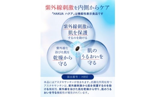 - <毎月定期便>紫外線対策サプリ機能性表示食品アスタキサンチン配合HAKUAハクア30日30粒全4回【4074219】