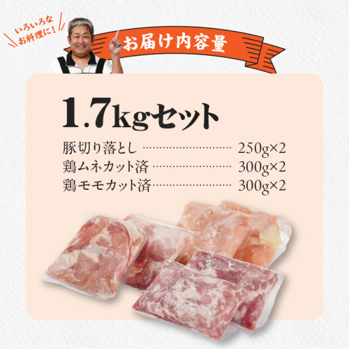 使いやすさ抜群!宮崎県産鶏肉(カット済)&豚肉切り落とし1.7kgセット_AA-8412