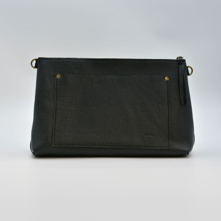 【ふるさと納税】益子の革工房maharoのショルダーポーチ ワイド(L)ブラック|栃木県 益子町 ふるさと納税 ショルダーポーチ ワイド 牛革 手作り(AX137)