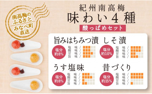 - 特選A級 紀州南高梅 味わい4種 酸っぱめセット800g 千年の知恵 梅干し 和歌山県産 hoso011