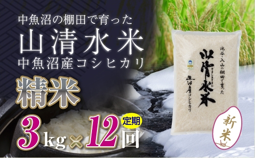 【先行新米予約】【定期便/全12回】精米3kg 新潟県魚沼産コシヒカリ「山清水米」十日町市 米