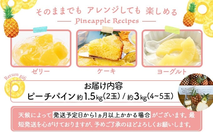 - <選べる容量>2026年 先行予約 ピーチパイン 約1.5kg〜3kg 2~5玉 ★西表島ふる~つらんど★不動の人気No.1 甘熟 果物 フルーツ パイン