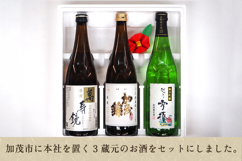 - 加茂の地酒Cセット(マスカガミ、加茂錦、雪椿)720ml×3本 萬寿鏡 加茂錦 雪椿 各蔵元の人気銘柄を飲み比べ 純米吟醸酒 贈答 加茂市 マルダイ有本