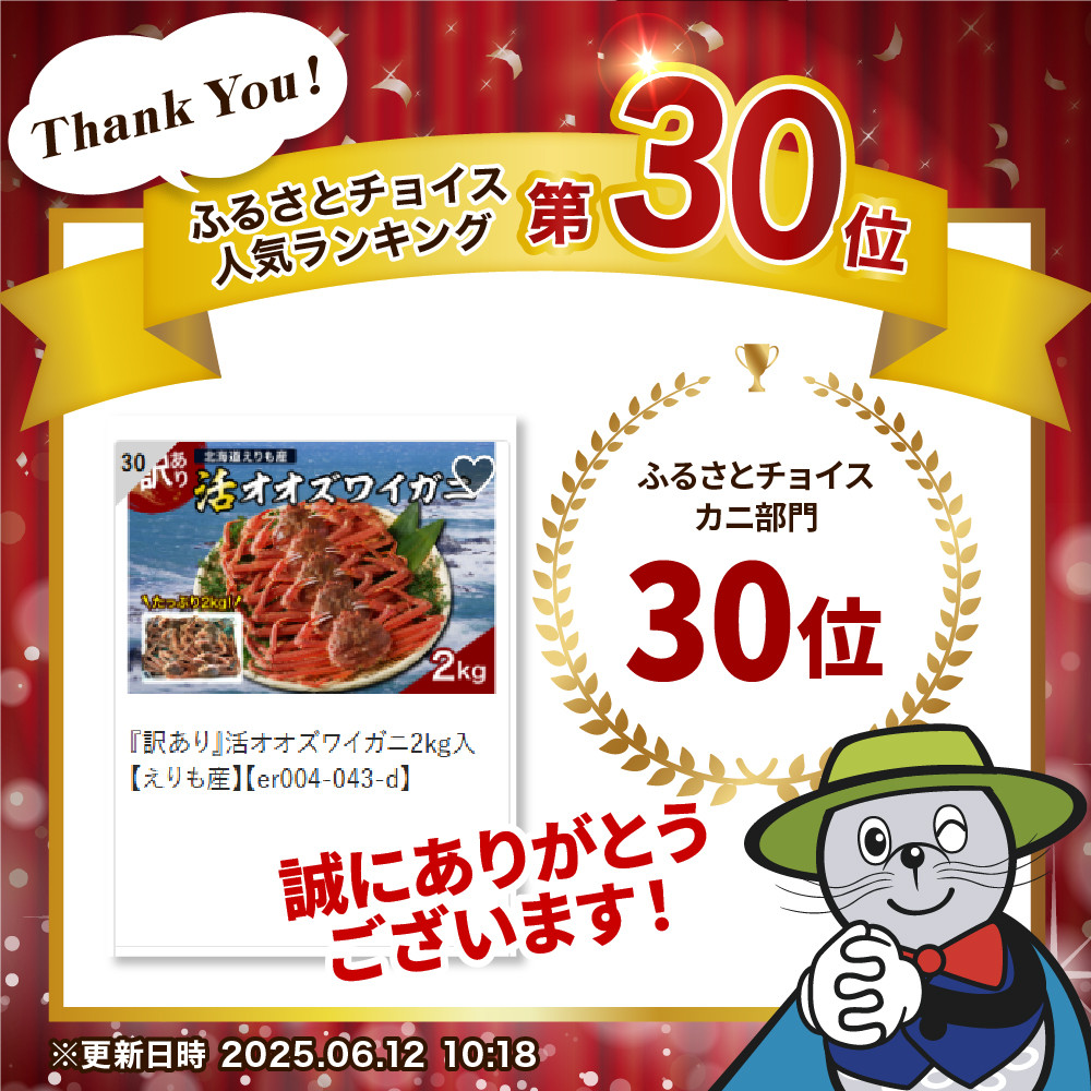 『訳あり』活オオズワイガニ2kg入【えりも産】【er004-043-e】
