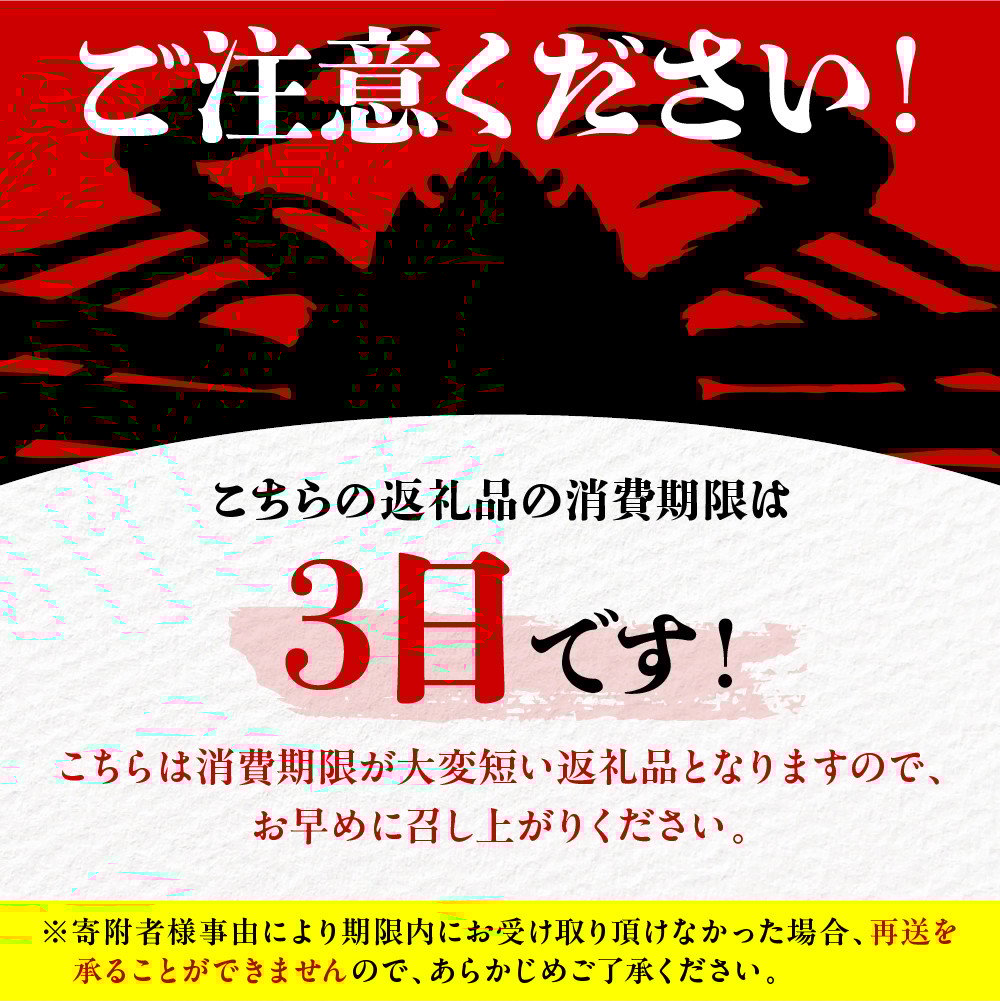 【先行予約】【訳あり 活松葉ガニ 生 3枚(計約1.2~1.5kg)冷蔵】2月以降配送予定 ※足が1~2本折れたカニが混じります カニの本場 香住で水揚げされた新鮮な活松葉ガニをお届け 国産 刺身 しゃぶしゃぶ 焼きガニ 鍋 カニ鍋 かにすき 脚 足 爪 身 肩 ランキング 大人気 ふるさと納税 兵庫県 香住 柴山 ズワイガニ かに 宿院商店 51000円 33-26