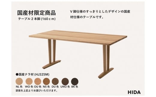 - 【飛騨の家具】HIDA国産材限定商品 テーブル 国産ナラ材仕様 V脚 W160(HJ325M)|飛騨高山 国産 机 テーブル インテリア 自然 素材 デザイン 和 飛騨産業 CG462