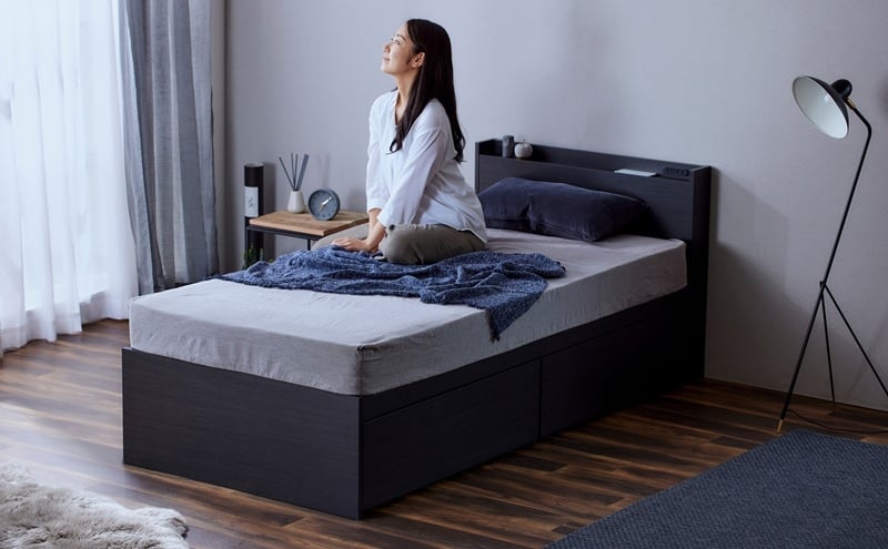 - ベッド 収納ベッド宮付き DSBM-S ブラック シングル 宮付き 収納 北欧風 おしゃれ 引き出し 収納 かわいい 2口コンセント すのこ構造 ベッド下収納 1人暮らし 新生活 アイリスオーヤマ