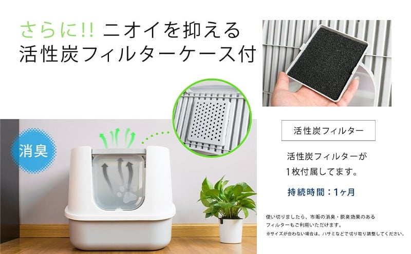 - ツードア猫トイレ 本体 フルカバー 2ドア 猫 トイレ 大きい 活性炭フィルター付き スコップ付き 飛び散り防止 散らかりにくい 砂落とし 蓋付き 扉付き 上から 横から おしゃれ Sunruck SR-TCT01-GY