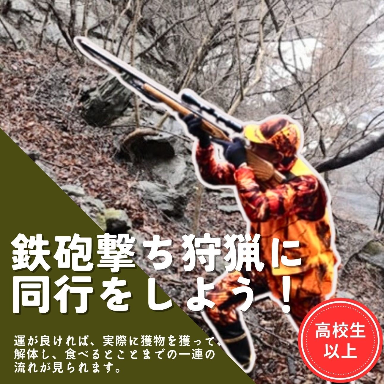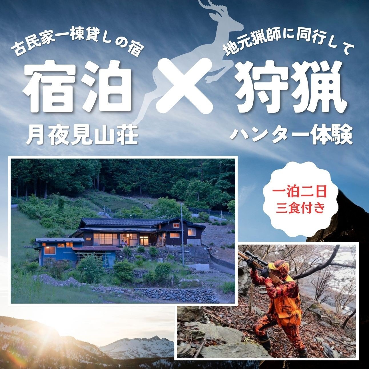 - 囲炉裏付き古民家に泊まり、鉄砲打ちの狩猟に同行しよう!(大人向け)