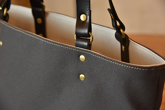 - 帆布と革のトートバッグ 近江牛レザー 地産帆布使用 アイアングレー【CC36W】