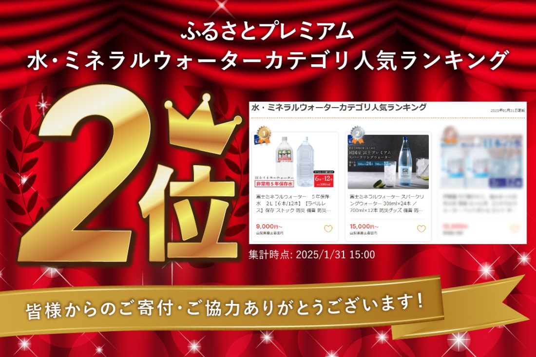 - 富士ミネラルウォーター スパークリングウォーター 300ml×24本 / 700ml×12本 防災グッズ 備蓄 防災 保存 ストック 山梨 富士吉田