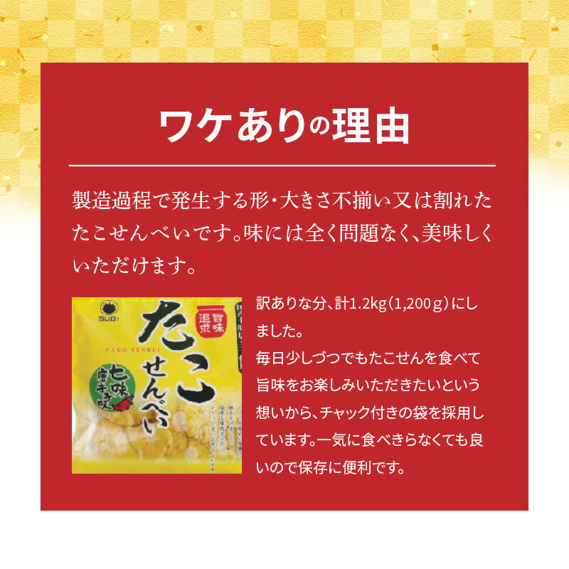 - 【ふるさと納税】訳あり!元祖たこせんべい!「たこせんべい七味唐辛子味 1.2kg (100g×12袋セット)」 こだわりの味と食感 せんべい おつまみ 海鮮 乾物 和菓子 お菓子 おやつ 煎餅 小分け 海鮮せんべい チャック付き袋 えびせん家族 人気 高リピート