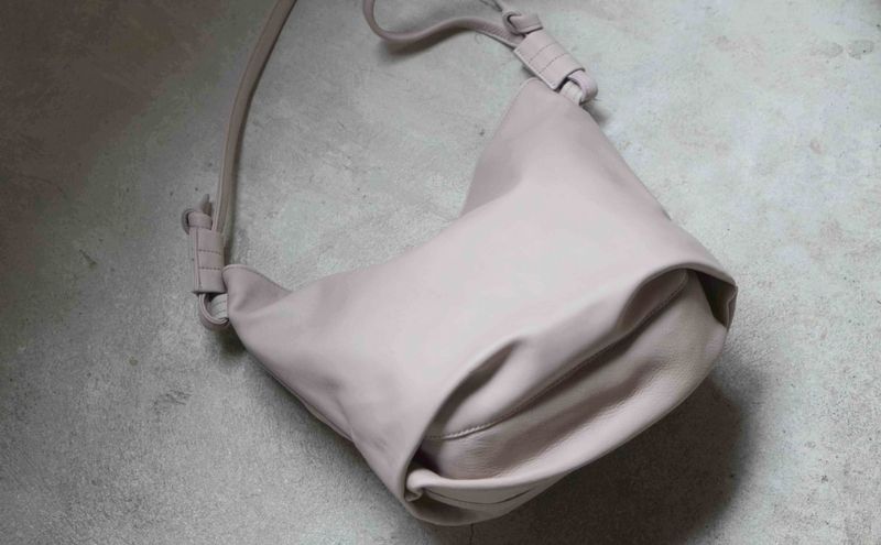 シルキータッチしっとりレザー 軽く柔らかい袋ショルダーバッグ・LUA(LA002)#ペールトープ バッグ ショルダーバッグ レザー 革製品 牛革 日本製 軽量 墨田区 東京