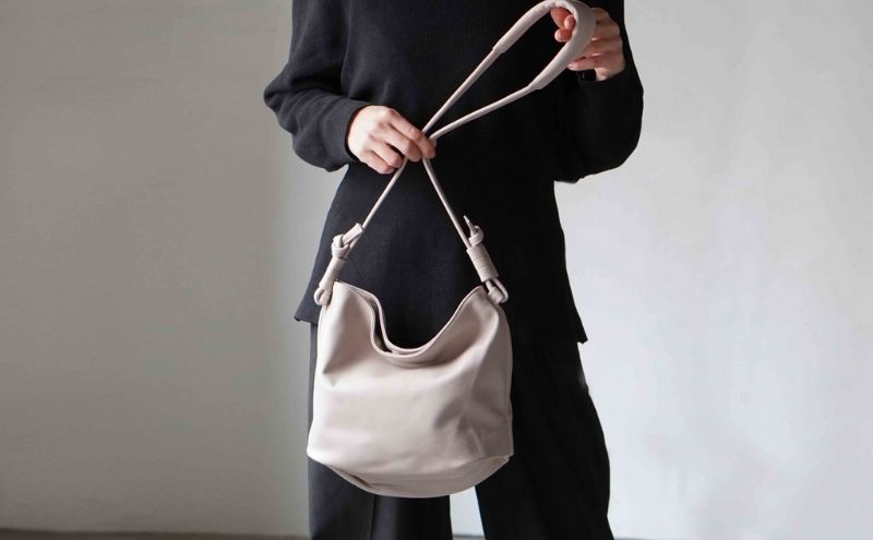 - シルキータッチしっとりレザー 軽く柔らかい袋ショルダーバッグ・LUA(LA002)#ペールトープ バッグ ショルダーバッグ レザー 革製品 牛革 日本製 軽量 墨田区 東京