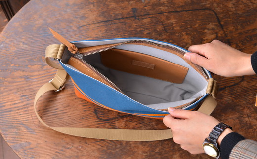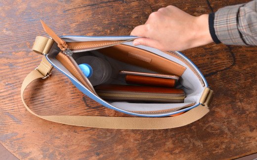 - ハンドメイド 八幡帆布鞄 ショルダーバッグ ヨコ型 琵琶湖ブルー 名入れ可 【CC10W】<br><br>