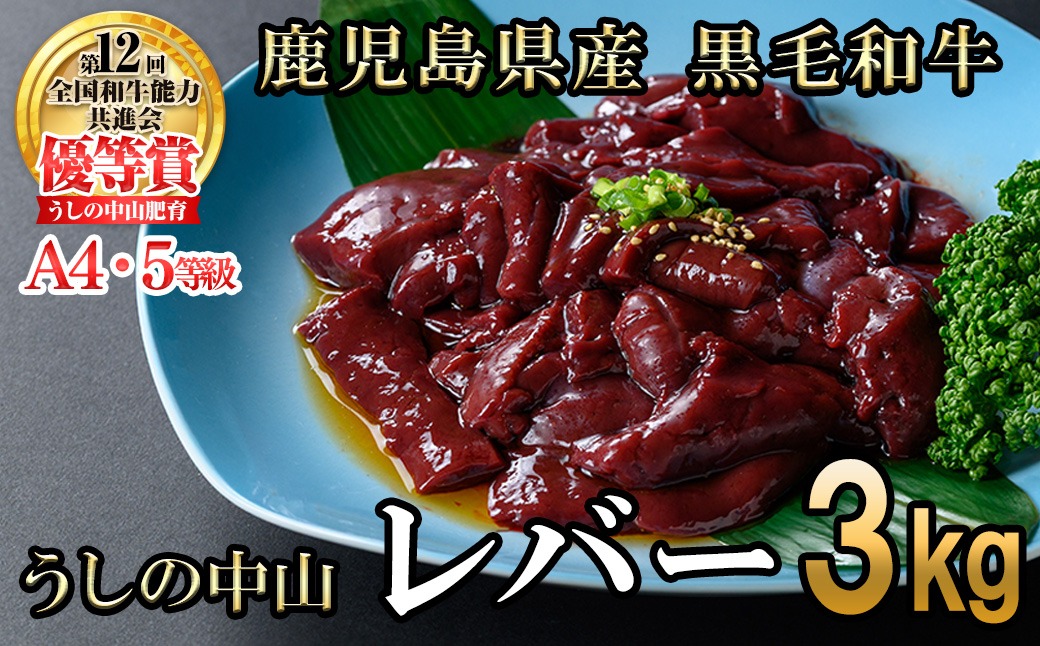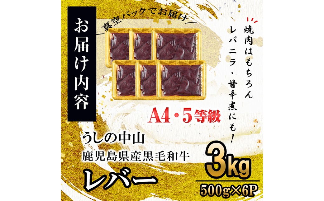 - うしの中山 A4・A5等級黒毛和牛 レバー 計3kg(500g×6P)c0-133