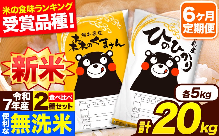 - 新米 令和7年産 無洗米【6ヶ月定期便】ひのひかり 森のくまさん 2種 食べ比べ 20kg (5kg × 4袋) 計6回お届け 無洗米 熊本県産 単一原料米 ひの 森くま 熊本県 長洲町《1月から出荷開始》---hm7tei_303000_20kg_jan6_ng---