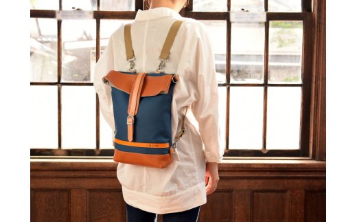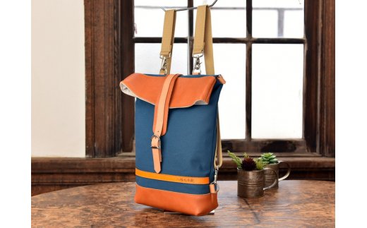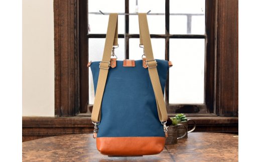 【寄附金額変更】倉敷産帆布×本革 2way トートバッグ(ネイビー×ブラウン)