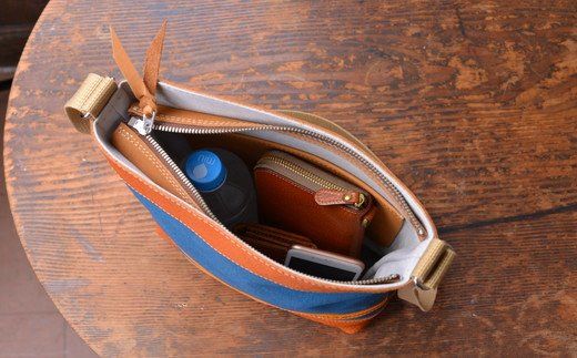 - ハンドメイド 八幡帆布鞄 ショルダーバッグ タテ型 琵琶湖ブルー 名入れ可 【CC09W】<br><br>